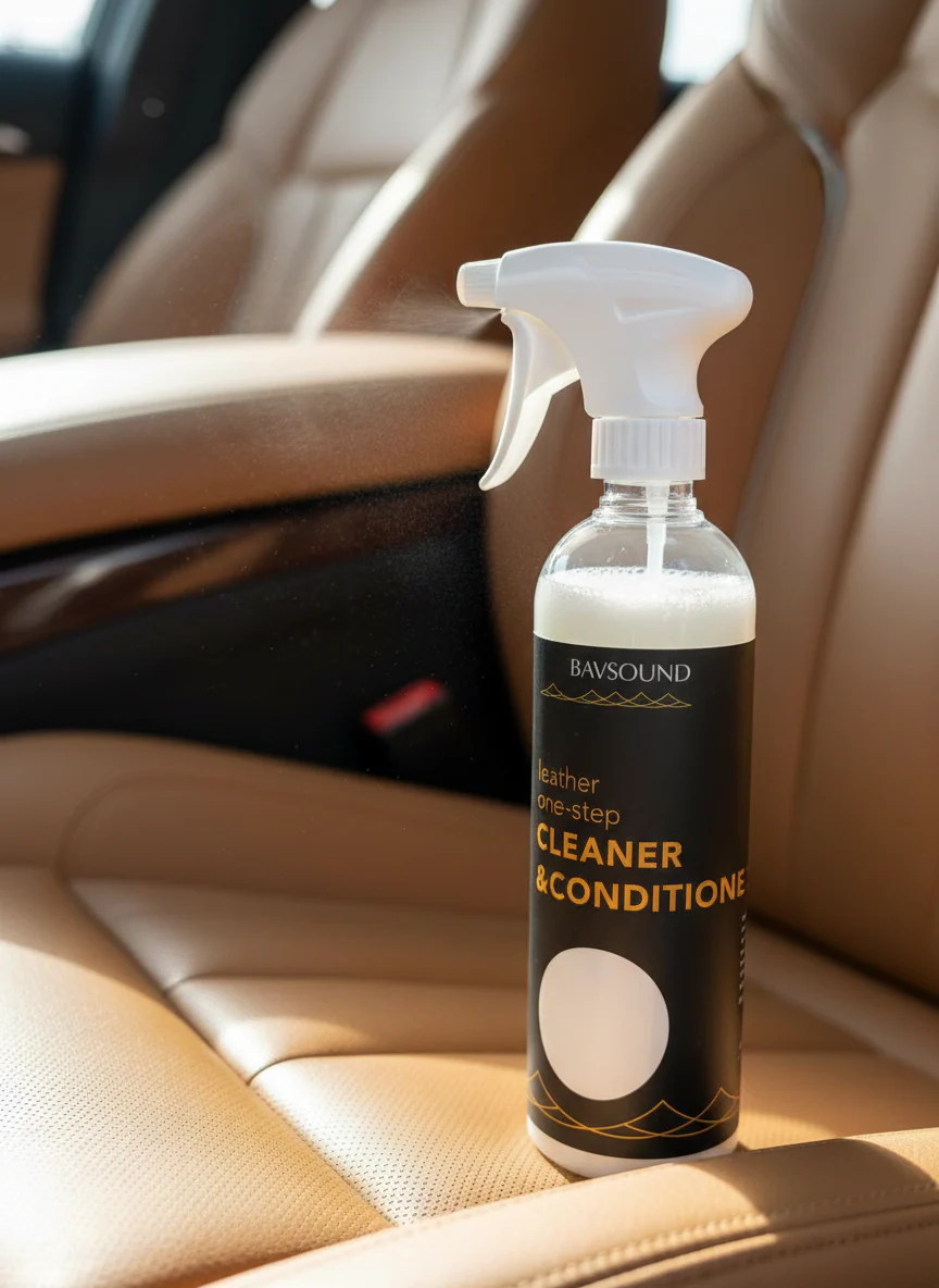 Bavsound Leather One Step is formulated specifically for these modern coated surfaces. It cleans without stripping, conditions without over-saturating, and maintains the factory finish without adding artificial gloss.